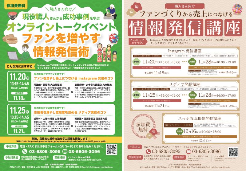 【秋田県の伝統的工芸品の製造・販売に携わっている方へ】オンライントークイベント&情報発信講座のご紹介!