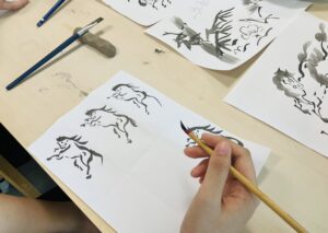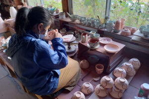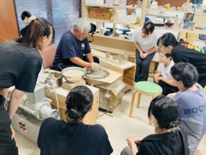 ろくろ体験から”左馬”(左向きの馬の絵柄で、右に出るものがないという縁起物)の