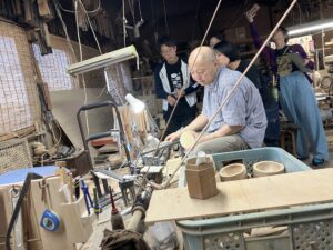 1日目の後半には、会津漆器独自の「鈴木式ろくろ」を実演していただくことに!