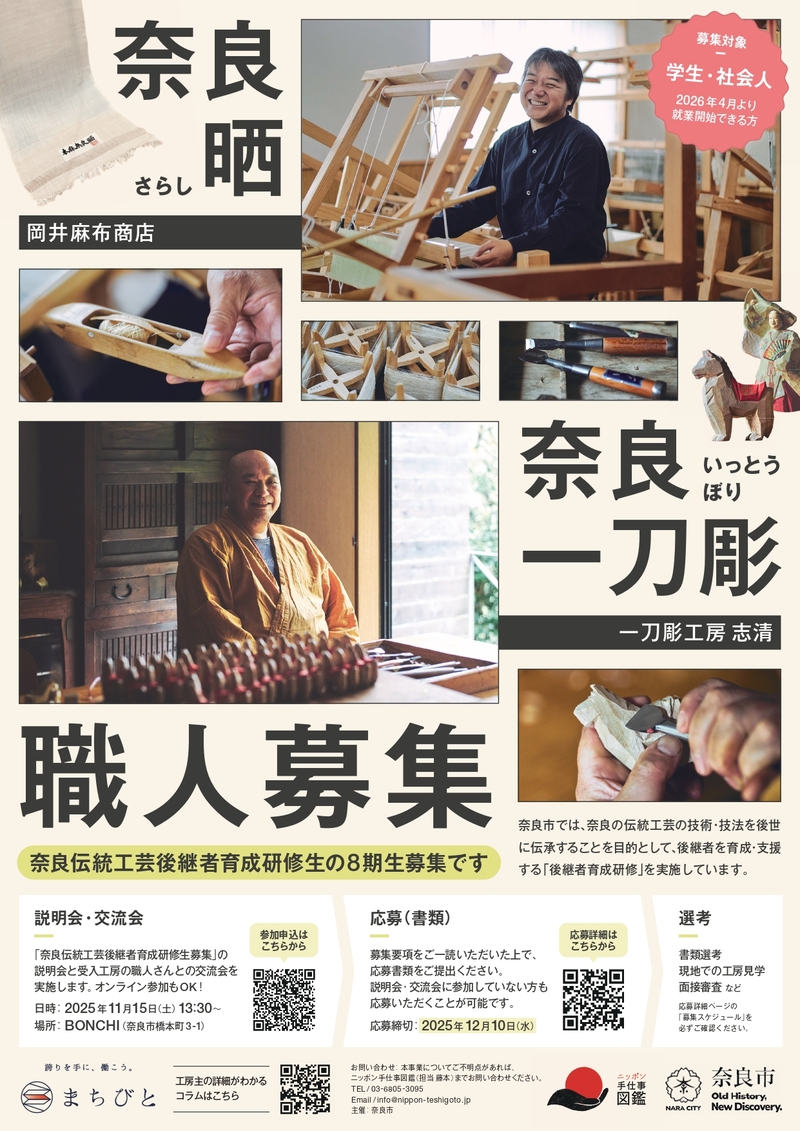 奈良市の「伝統工芸後継者育成研修生募集」に関する