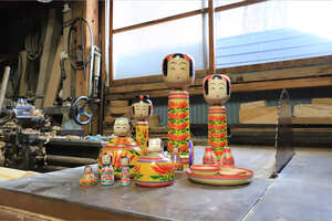鈴木こけし工房は、肘折温泉で50年以上こけしを製作する、唯一の工房。